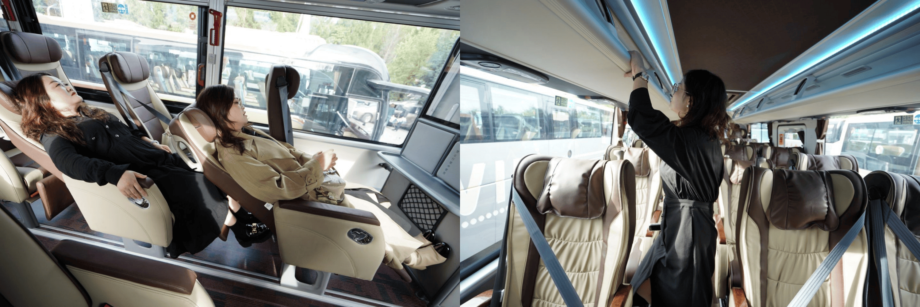 BJ6132面向长途旅游,39座2+2半躺座椅,靠背调节145度,加长版腿脱,头枕高低可调,让游客躺着出行。同时卫生间、冰箱、气动平移舱门、USB等功能,功能完备,为司乘出行提供舒适便捷感受,极大提升了长途乘坐的便利性与舒适度。在安全方面,配备AEBS、ESC、液力缓速器等多项主动安全系统,结合全承载车身与低风阻设计,保障行驶经济性与可靠性,为旅客提供安心愉悦的出行体验。