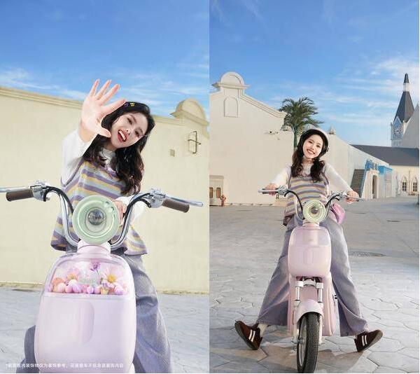 新日花蓓,这款被誉为“时尚百变座驾”的新国标电动车,曼塔紫的车身,仿佛将晚霞披在身上;搭配U型流动车身与睫毛大灯,外观清新灵动,自带甜美气质。更令人心动的是其DIY透明橱窗设计,你可以贴上喜欢的贴纸,放上陪伴多年的玩偶,或是一张写着“今日宜开心”的卡片,让座驾成为个人风格的延伸。